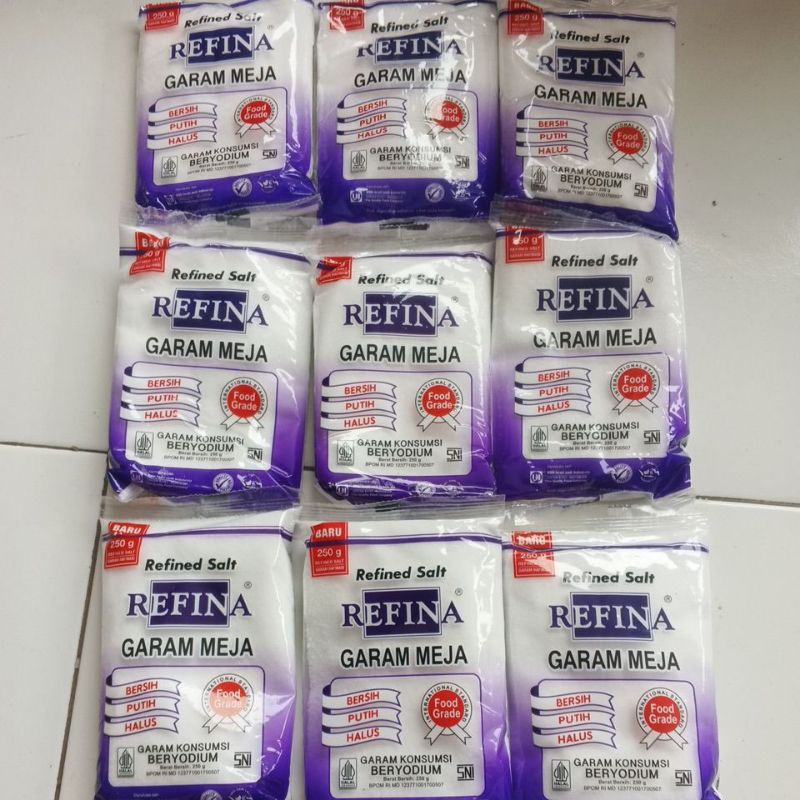 Garam refina adalah garam konsumsi yang telah melalui proses penyulingan (refinery) untuk menghasilkan garam yang lebih murni, putih, halus, dan bersih. Proses ini menghilangkan kotoran, logam berat, dan zat-zat lain yang mungkin ada dalam garam alami. Garam refina juga dikenal sebagai garam meja dan sering digunakan untuk memasak dan sebagai penyedap makanan.