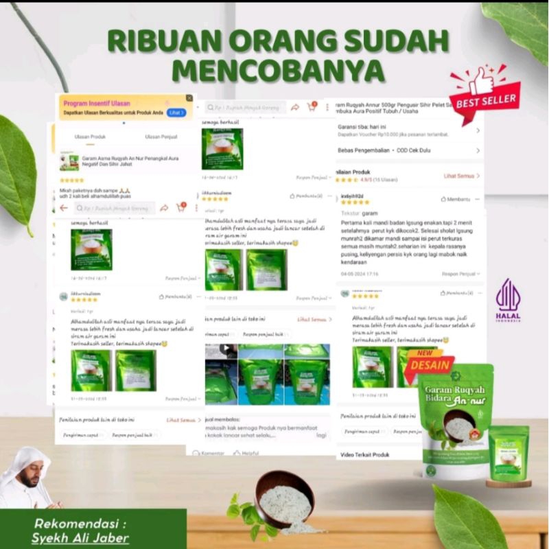 Garam Ruqyah Daun Bidara An-Nur Asli Penangkal Sihir dan Gangguan Goib Garam Ruqyah Daun Bidara An-Nur Asli Penangkal Sihir dan Gangguan Goib adalah solusi sempurna untuk menghilangkan aura negatif dan menjaga keamanan rumah atau tempat usaha. Dengan kemasan pack, produk ini sangat praktis digunakan.