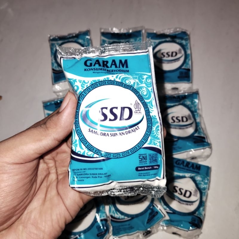 GARAM SSD BERYODIUM ISI 100gr DAPAT 10 BKS. HALAL DAN SUDAH TERDAFTAR DI BPOM INDONESIA. PRODUKSI PP. SUNAN DRAJAT LAMONGAN