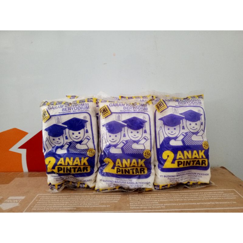 Garam Yodium Dua Anak Pintar adalah garam meja yang diperkaya dengan yodium untuk membantu mencegah kekurangan yodium. Dengan kandungan yodium yang cukup, garam ini membantu menjaga kesehatan tubuh dan otak. Garam Yodium Dua Anak Pintar juga memiliki rasa yang lezat dan tekstur yang halus, membuatnya mudah digunakan dalam memasak. Kemasan ini berisi 250 gram garam yang siap digunakan untuk memenuhi kebutuhan harian Anda.