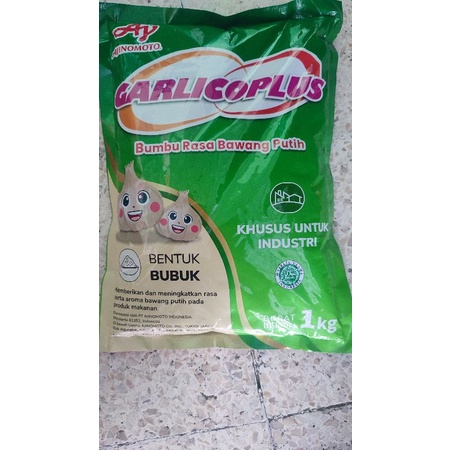 GARLICOPLUS Ajinomoto terbuat dari ekstrak bawang putih yang melalui tahapan proses menjadi bubuk halus dimana mempunyai rasa dan aroma bawang putih yang kuat. GARLICOPLUS mempunyai keistimewaan tahan disuhu tinggi sehingga rasa bawang putih yg sangat kuat, sangat praktis untuk digunakan sebagai bumbu masakan/makanan atau dicampurkan pada adonan tepung bumbu, bumbu snack, kerupuk/keripik..