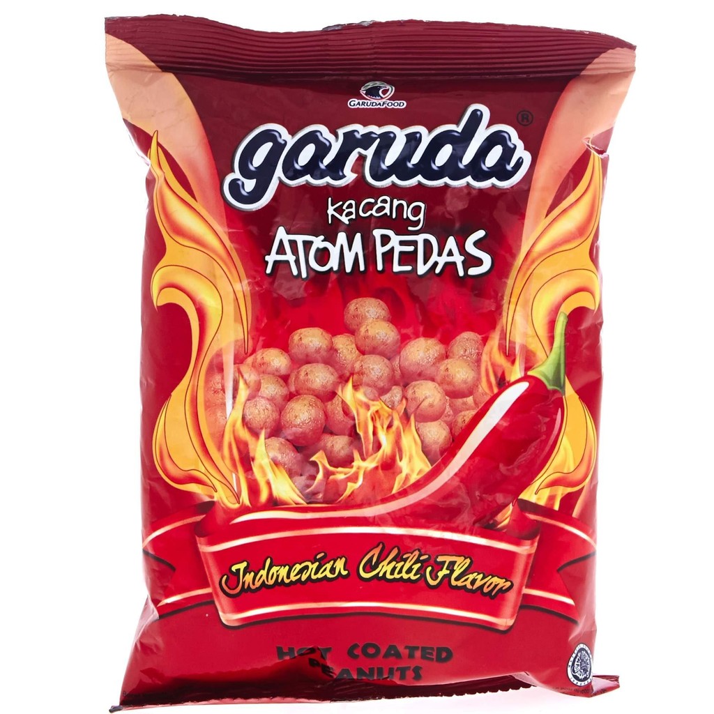 Mendukung tim sepakbola kesayangan dari siaran langsung di televisi, menonton film favorit, atau bernyanyi dengan perasaan yang gembira adalah hal-hal yang sangat menyenangkan. Apalagi, jika semua itu dilalui bersama teman-teman, sahabat, atau keluarga. Maka, maksimalkan segala keseruan tersebut dengan makanan ringan yang akan membuat segala keseruan itu lebih maksimal. Kacang Garuda hadir untuk memaksimalkan kebersamaan Anda bersama orang-orang tercinta dengan segala kerenyahan dan cita rasanya yang khas. Mendukung tim sepakbola kesayangan dan aktivitas seru lainnya akan terasa lebih seru maksimal. Garuda Kacang Atom Rasa Pedas 200gr adalah kacang atom persembahan Garuda Food. Kacang atom Garuda dihasilkan dari kacang tanah pilihan yang garing dan padat kemudian dibalut oleh tepung tapioka dan digoreng hingga kering dan garing dalam minyak nabati yang sehat. Berbagai manfaat yang ada dalam kacang tanah ada dalam setiap kerenyahan kacang atom Garuda. Bahkan, kekayaan lemak tak jenuh dalam kacang Garuda dapat mengurangi risiko jantung koroner pada hidup Anda. Rasa pedasnya yang istimewa dan teksturnya yang garing akan memeriahkan setiap aktivitas seru Anda. Maksimalkan setiap momen kebersamaan Anda bersama teman, sahabat, dan keluarga dengan Garuda Kacang Atom Rasa Pedas dan rasa garingnya.