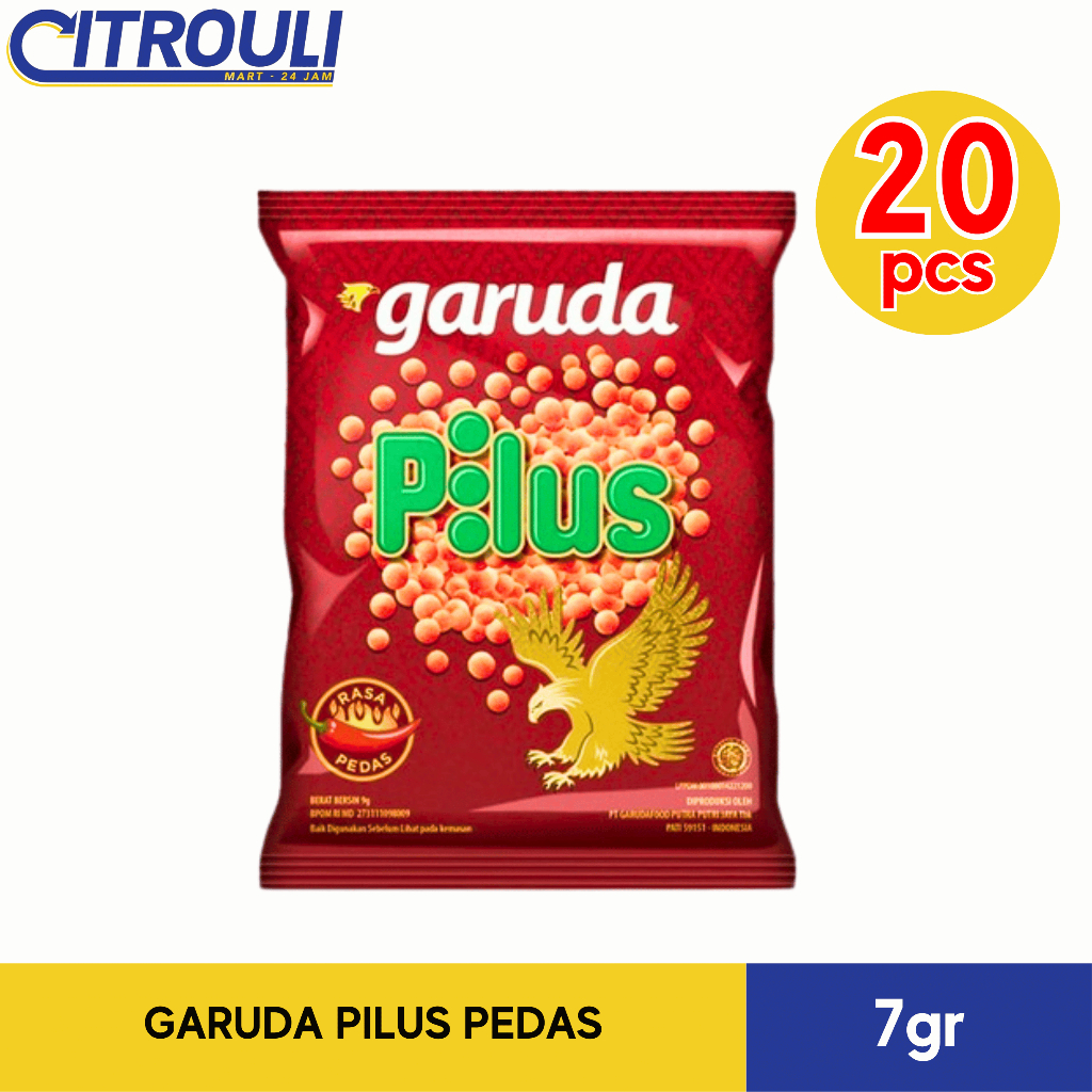 Garuda Snack Pilus rasa Pedas adalah snack berbentuk bulat-bulat kecil dengan rasa yang gurih dan pedas. Kehadiran Garuda Snack Pilus rasa Pedas menambah asik setiap aktifitas kamu. Makan nasi, bubur, dan menu favorit lainnya jadilebih asik kalau ditambah Pilus Garuda.