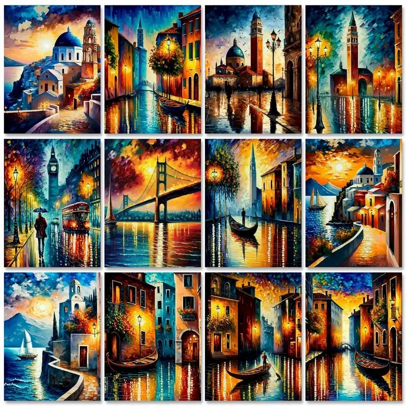 GATYZTORY Абстрактная живопись по номерам Diy подарки город пейзаж холст живопись для взрослых Рисование по номерам картина раскраска Wal