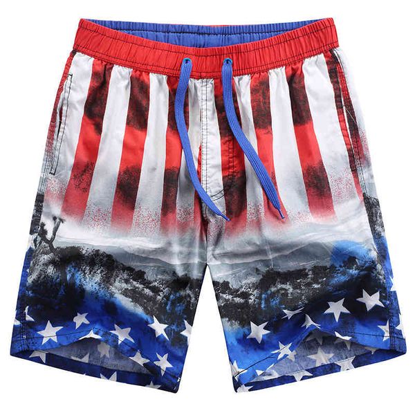 mar summer men's star spangled banner star straight beach pants youth pure cotton slim fit shorts trend, White;black