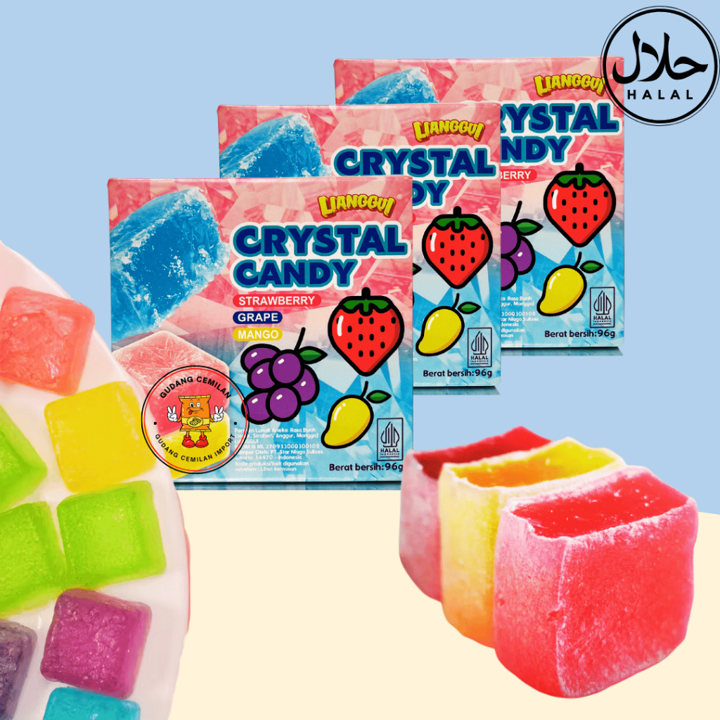 Nikmati sensasi manis yang menyegarkan dengan Halal Lianggui Crystal Candy! Permen kristal dengan aneka rasa stroberi, anggur, dan mangga yang pastinya bikin kamu ketagihan. Dengan berat 96g, permen ini cocok banget buat kamu yang suka ngemil di mana saja.