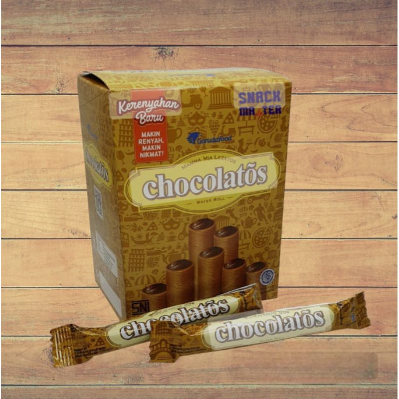 Kombinasi sempurna antara wafer cokelat stick yang renyah dan krim cokelat yang padat dengan cita rasa khas Italianya membuat Chocolatos menjadi makanan ringan yang digemari di seluruh Indonesia. Dengan kemasan yang lebih simple sangat cocok untuk teman dalam setiap perjalanan dan dimanapun berada.