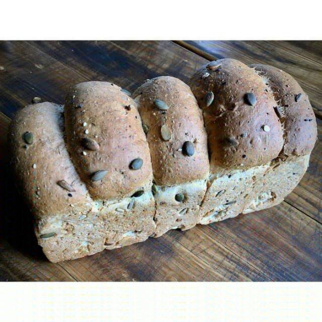 Roti yang terbuat dari gandum pilihan yang berkualitas dan biji2 pumpkin, wijen, bunga matahari.