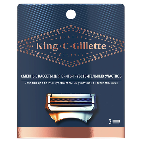 Комплектация: Сменные кассеты для бритья чувствительных участков King C. Gillette, для мужчин, 3 шт. в упаковке