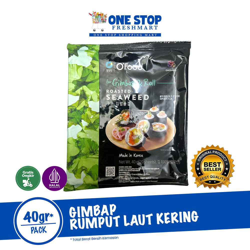 CHUNG JUNG ONE Gimbap Rumput Laut Kering 40g adalah lembaran rumput laut (nori) berkualitas tinggi asal Korea Selatan, khusus diproses untuk pembuatan gimbap (kimbap) dan sushi. Setiap lembar dipanggang dua kali menggunakan minyak jagung dan minyak wijen, menghasilkan tekstur renyah dan rasa gurih alami.