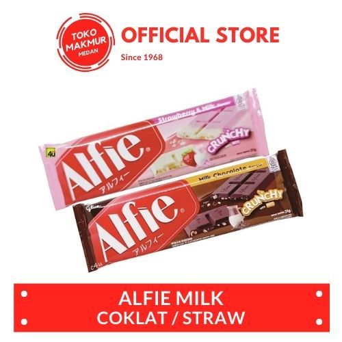 Coklat bar kecil dari Glico dgn brand Alfie. Terdiri dari potongan2 coklat compound dgn kandungan susu dan berbagai varian rasa. Dikombinasikan dgn crunchy bits, berupa butiran2 krispi yg renyah didalamnya. Dikemas dalam sachet2 kecil satuan dgn netto 31 gr. Beratribut lengkap BPOM RI dan Halal Indonesia. Silahkan diorder.