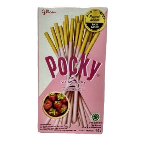 Glico Pocky Strawbery 45gr adalah biskuit stik yang diproduksi oleh Glico, salah satu perusahaan snack terbesar di Jepang yang telah berdiri sejak tahun 1966. Glico Pocky merupakan stik yang banyak diminati oleh masyarakat di berbagai belahan dunia karena memberikan pengalaman menikmati makanan ringan yang unik. Keunikan itu ada karena Glico Pocky dilapisi oleh krim, tetapi menyisakan beberapa bagiannya tidak terlapisi krim sehingga tangan tidak akan kotor oleh krim. Lapisan krim yang ada pada Glicko Pocky pun lebih tebal sehingga memberikan rasa yang lebih kuat di lidah kita. Glicko Pocky Strawbery akan memberikan rasa strawbery yang spesial. Glico Pocky hadir dalam kemasan kotak dengan berat bersih 45 gram sehingga mudah untuk dibawa dan dinikmati kapan pun dan di mana pun. Tampilan biskuit stik yang menarik dari Glico Pocky Strawbery 45gr akan membuat Anda ingin mencobanya lagi dan lagi. Kerenyahan dan rasanya yang enak dapat kamu nikmati tanpa harus merasa takut menjadi gemuk. Nikmati waktu bahagiamu bersama keluarga dan sahabat dengan obrolan seru berbagi rasa bersama Glico Pocky!