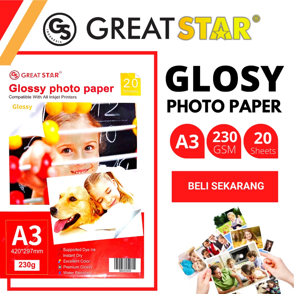 GLOSY PHOTO PAPER A3/20 LEMBAR WATERPROOF