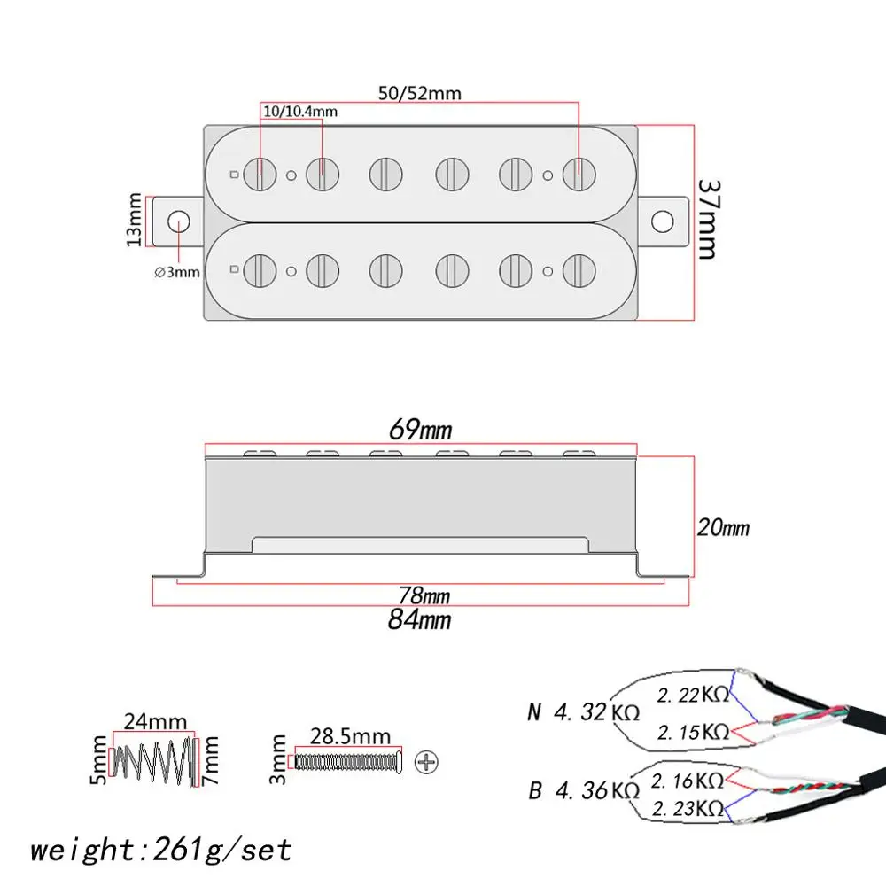 GMC84 Alnico 8 двойная катушка хамбакер шея и мост Пикап Черный 4 провода медленный выход гитарные аксессуары