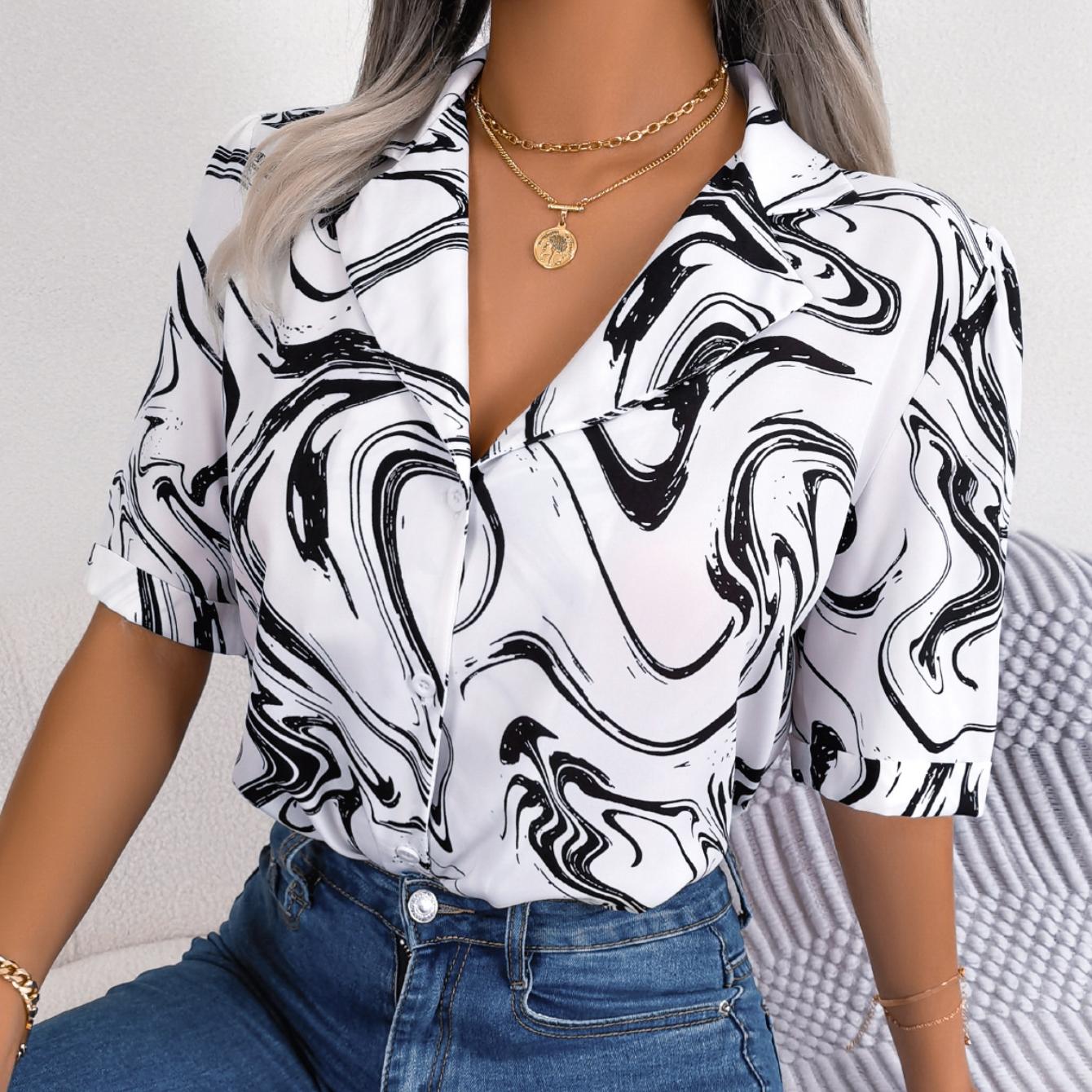 GMXIA Женская модная повседневная рубашка с коротким рукавом и воротником, блузки и рубашки контрастного цвета, свободная рубашка S белый