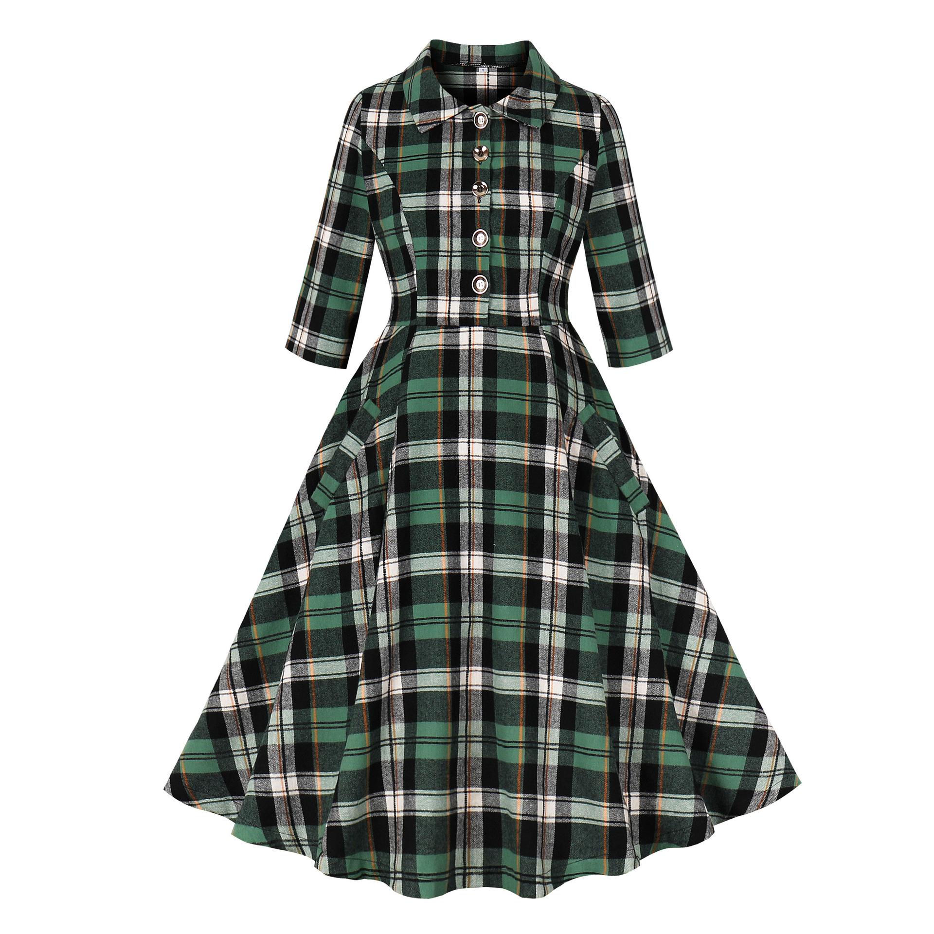 GMXIA Ретро-шикарные женские платья в стиле Хепберн с карманами в клетку, изысканные платья с рукавами семь четвертей на осень/зиму S