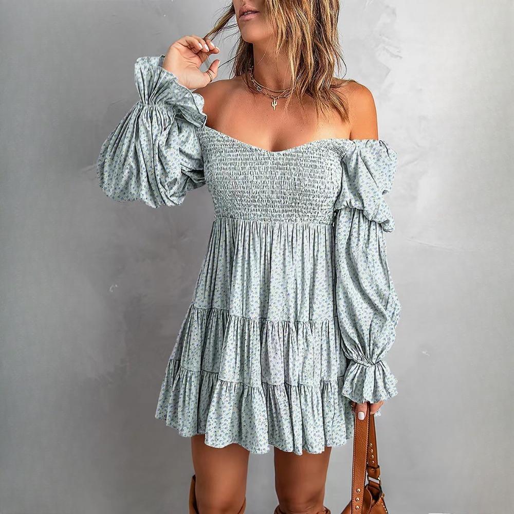 GMXIA Осеннее однотонное платье-трапеция с плиссировкой на талии, сексуальные платья на одно плечо XL светло-синий