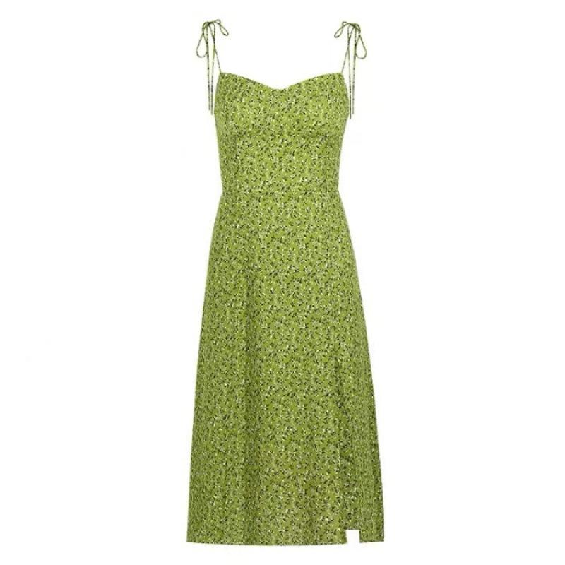 GMXIA Талия Летняя женская зеленая Platycodon Цветочная Пляжная Праздничная Одежда Платье-Халтер XL