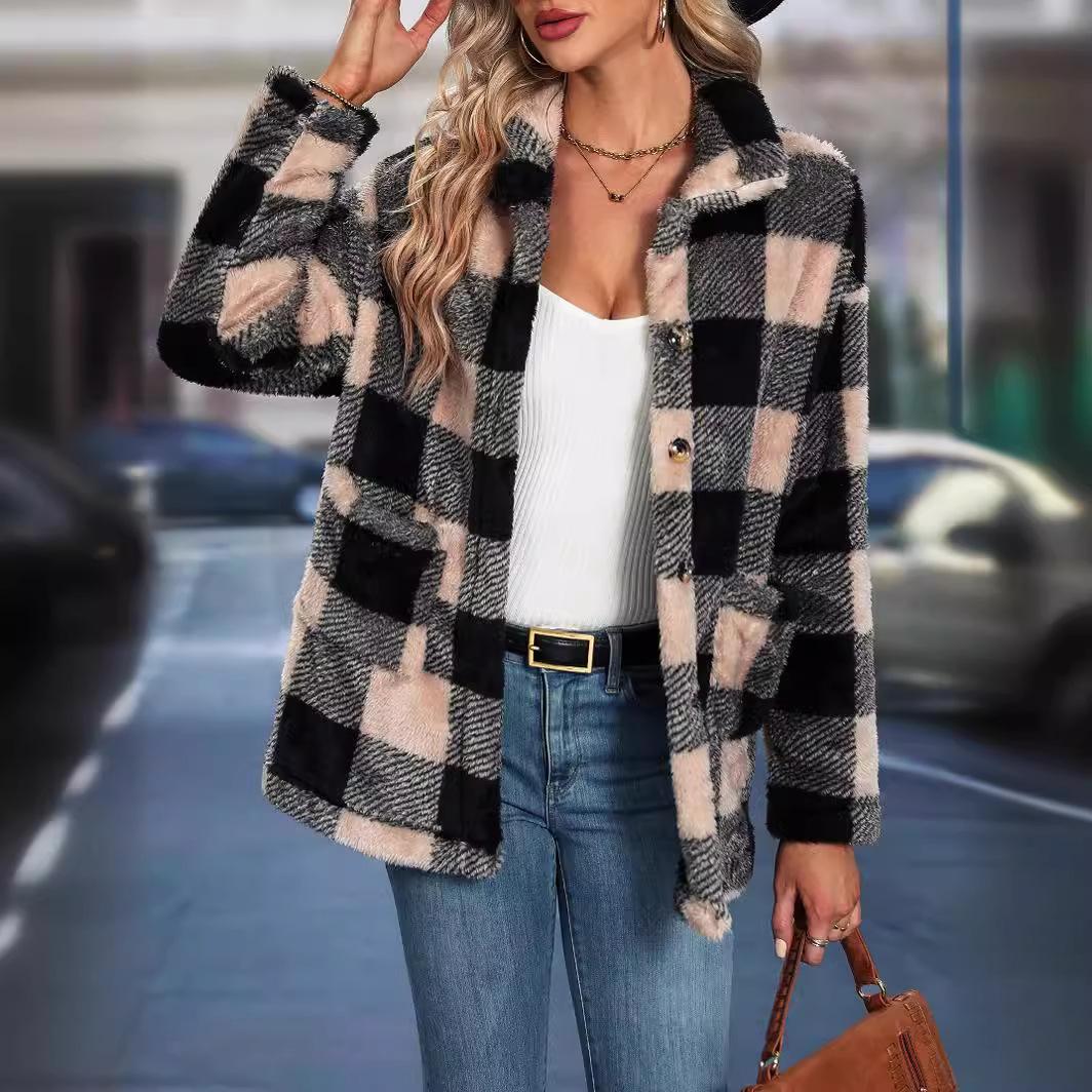 GMXIA женские винтажные повседневные куртки и пальто с воротником в клетку с клетчатым принтом, осенне-зимние куртки-поло с длинными рукавами и пальто XL абрикосовый