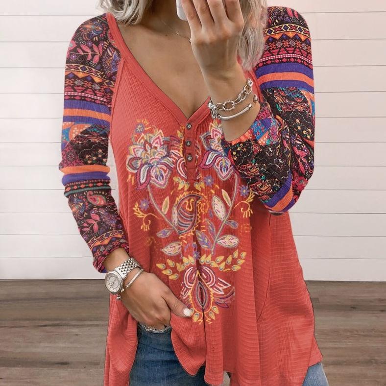 GMXIA женские модные повседневные летние однотонные свободные блузки и рубашки с длинными рукавами и v-образным вырезом с принтом XL красный