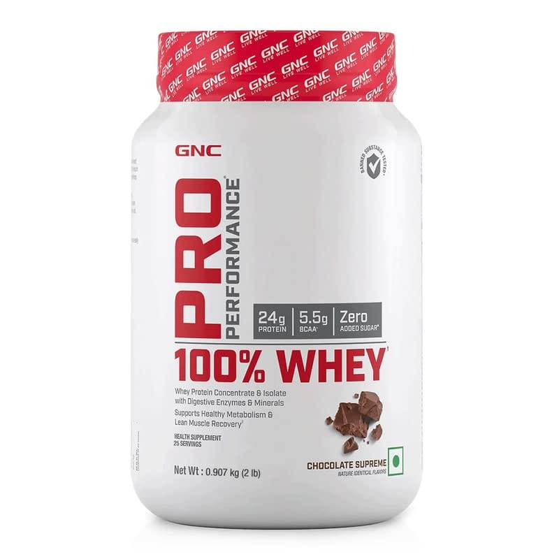 GNC Pro Performance 100% Whey Protein Powder | Boosts Strength & Endurance | Builds Lean Muscles | Fastens Muscle Recovery | Formulated In USA | 24g Protein | 5.5g BCAA | 4 lbs