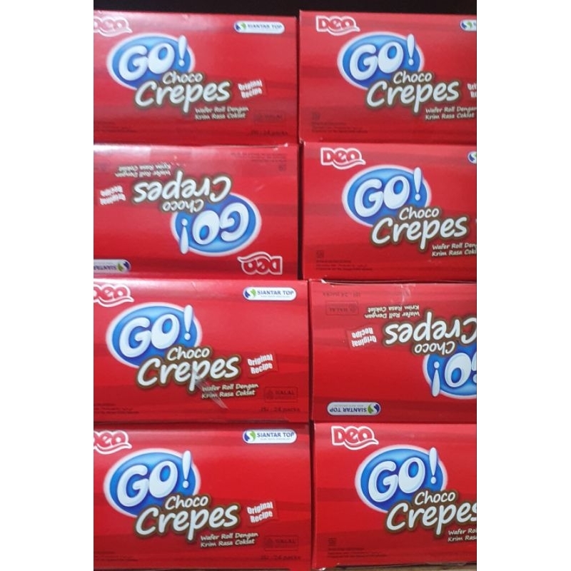 Go! Crepes adalah wafer roll dengan krim rasa coklat. Produk ini diproduksi oleh Siantar Top Deo.