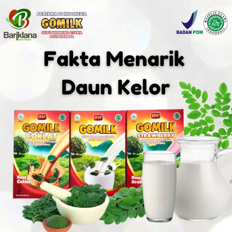 Susu Kambing Gomilk adalah Susu Kambing Etawa plus Daun Kelor + Daun Salam dan Mengkudu( Izin POM ). Jadi nggak perlu ragu konsumsi susu kambing ya kak, ini udah ada ijin bpom nya, aman dikonsumsi. bisa untuk menambah kekebalan tubuh kakak, mengaktipkan antibodi. minumlah setiap hari kak.