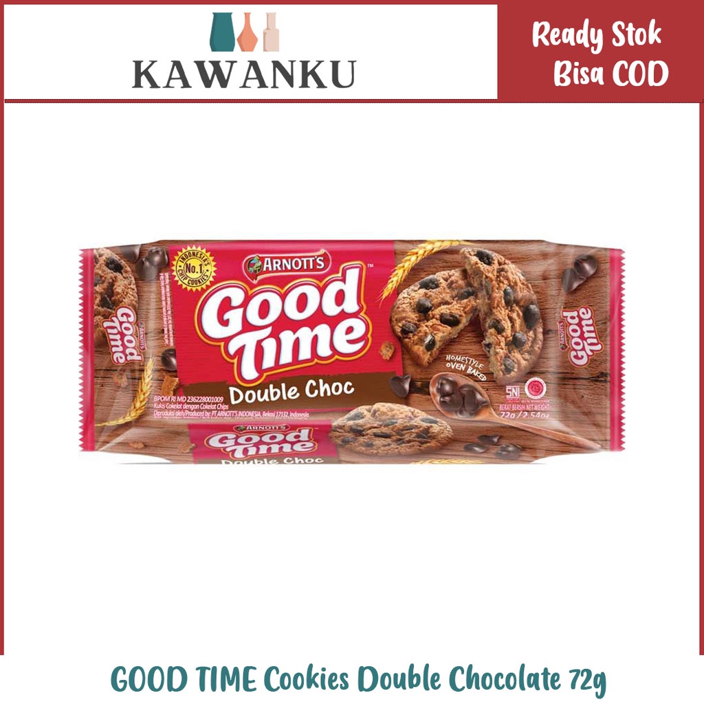GOOD TIME Cookies Double Chocolate 72g adalah varian Good Time Cookies rasa coklat yang berlipat. Kerenyahan kue kering berkualitas ditambah dengan taburan choco chips rasa coklat yang lebih banyak akan memberikan pengalaman makan yang istimewa untuk Anda dan keluarga. Perpaduan renyah dan manisnya menjadikan Good Time Cookies Double Chocolate pilihan yang tepat dalam berbagai kesempatan. Kue cookies ini juga dapat menjadi teman minum kopi, teh, dan susu kesukaan Anda. Rasakan rasa coklat berlipatnya dan warnai hari-hari Anda dan keluarga dengan Good Time Cookies Double Chocolate.