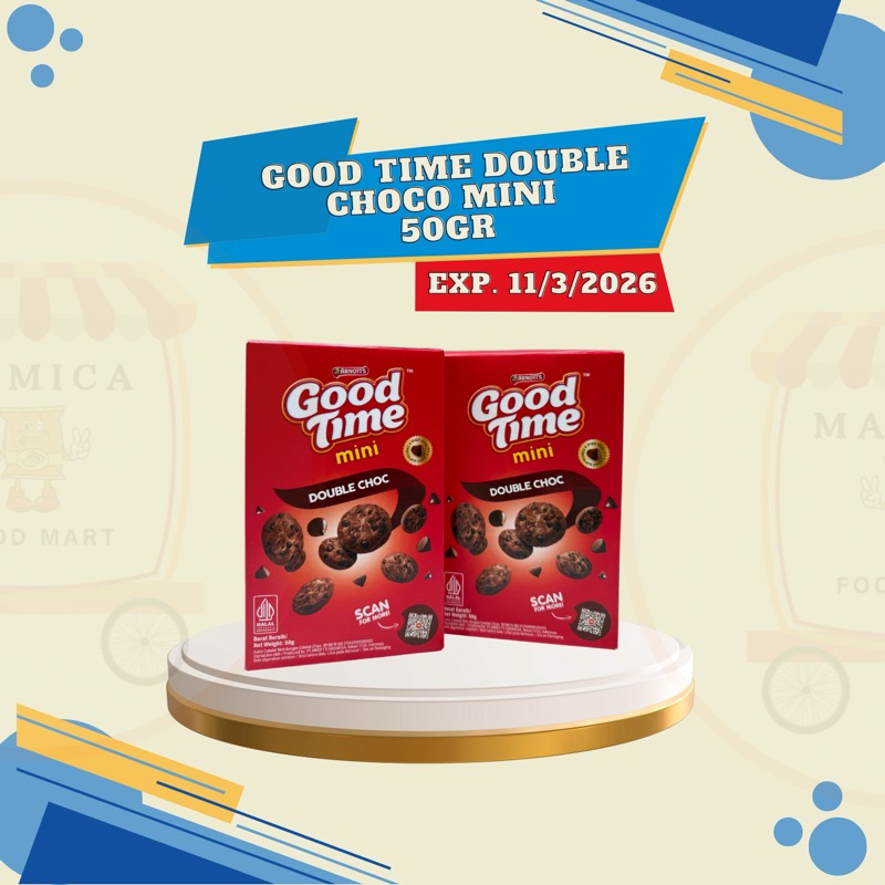 Good Time Mini Box 50gr dengan kemasan praktis dan siap dibawa kemana saja. Satu kemasan yang praktis berisi 25 keping Good Time cookies. Dengan rasa coklat yang nikmat Good Time, semakin nikmat untuk dinikmati saat istirahat sekolah, saat bersama teman-teman ataupun untuk bekal bepergian.