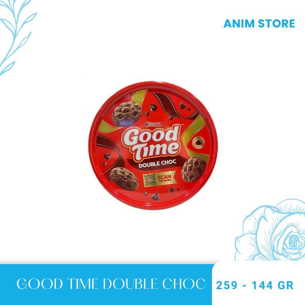 Goodtime Double Choc merupakan biskuit cookies cokelat dengan taburan cokelat yang renyah, nikmat, dan lezat. Cocok dijadikan cemilan dalam perjalanan atau saat santai bersama keluarga, serta dapat dijadikan parcel untuk idul fitri.