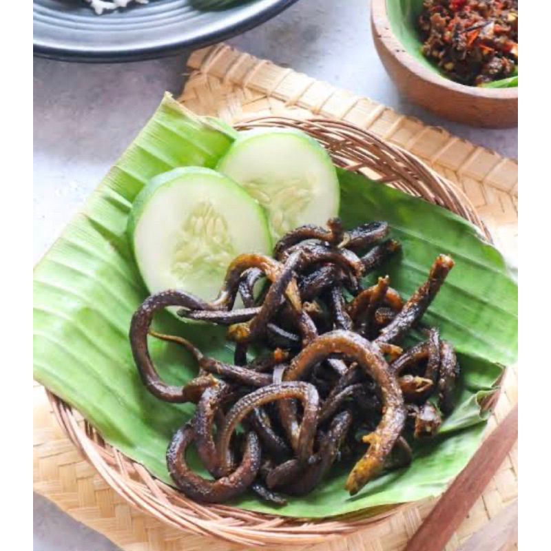 Tersedia goreng belut & simet kemasan toples & jiplok uk 250g dll
