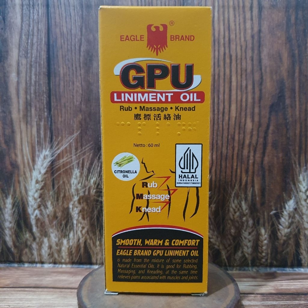 Minyak Urut GPU Cap Lang dipercaya bermanfaat untuk membantu meredakan nyeri otot, pegal linu, nyeri sendi, terkilir, sakit punggung, keseleo, serta memperlancar aliran darah.