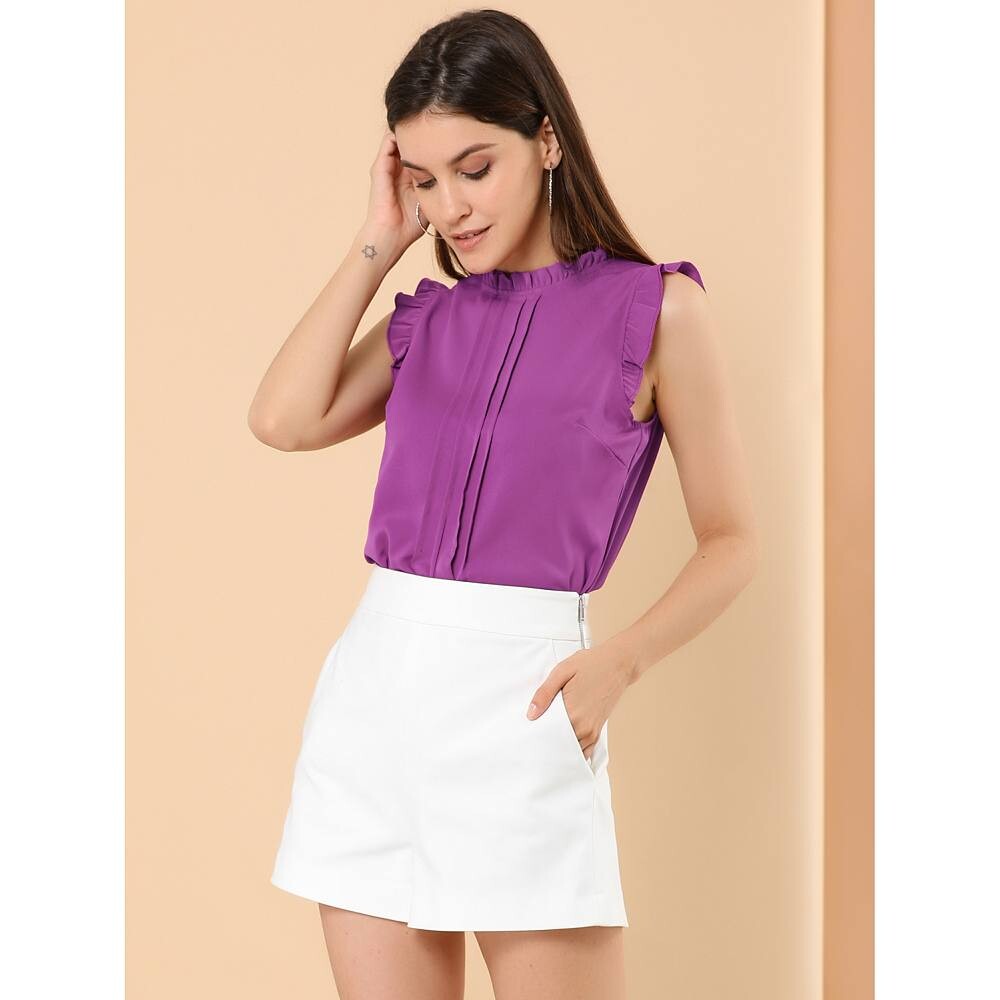 Топ без рукавов для женщин, деловые офисные блузки с винтажным цветочным принтом и рюшами ALLEGRA K, цвет Dark Blue