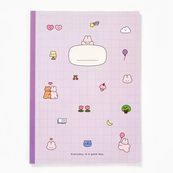 Artbox memperkenalkan ini adalah buku catatan semester baru dengan pola kelinci merah muda yang lucu dengan latar belakang ungu muda.
