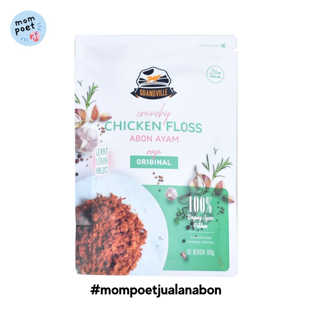 - Grandville abon dibuat menggunakan bagian ayam dengan bagian dan serat terbaik