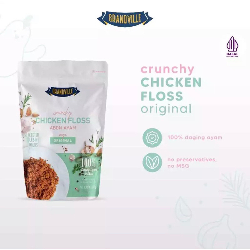 Grandville Abon adalah pelopor Abon Crunchy pertama di Indonesia, diolah dengan menggunakan kualitas daging Ayam terbaik serta bahan-bahanyang alami membuat Grandville Abon aman dikonsumsi oleh siapapun karena Grandville abon diproduksi tanpa menggunakan bahan pengawet dan tanpa MSG.