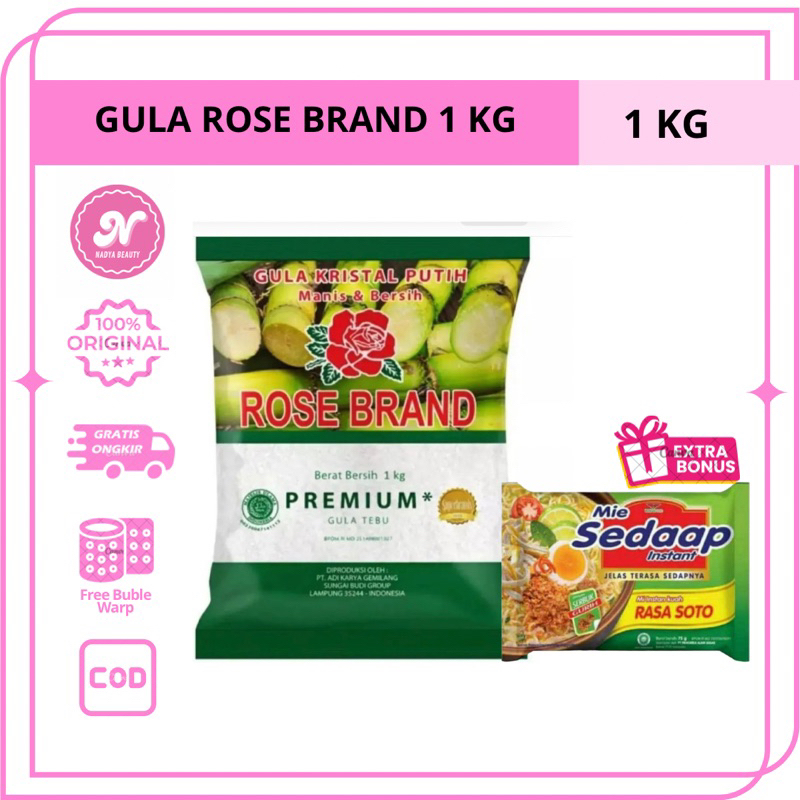 [GRATIS MIE] GULA ROSE BRAND 1 KG + GRATIS 1 MIE SEDAP SOTO