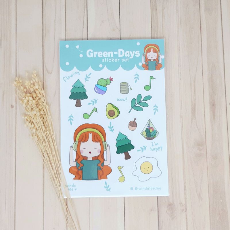 GREEN DAYS Cute Sticker Set Kisscut- Planner Sticker Handmade by Winda