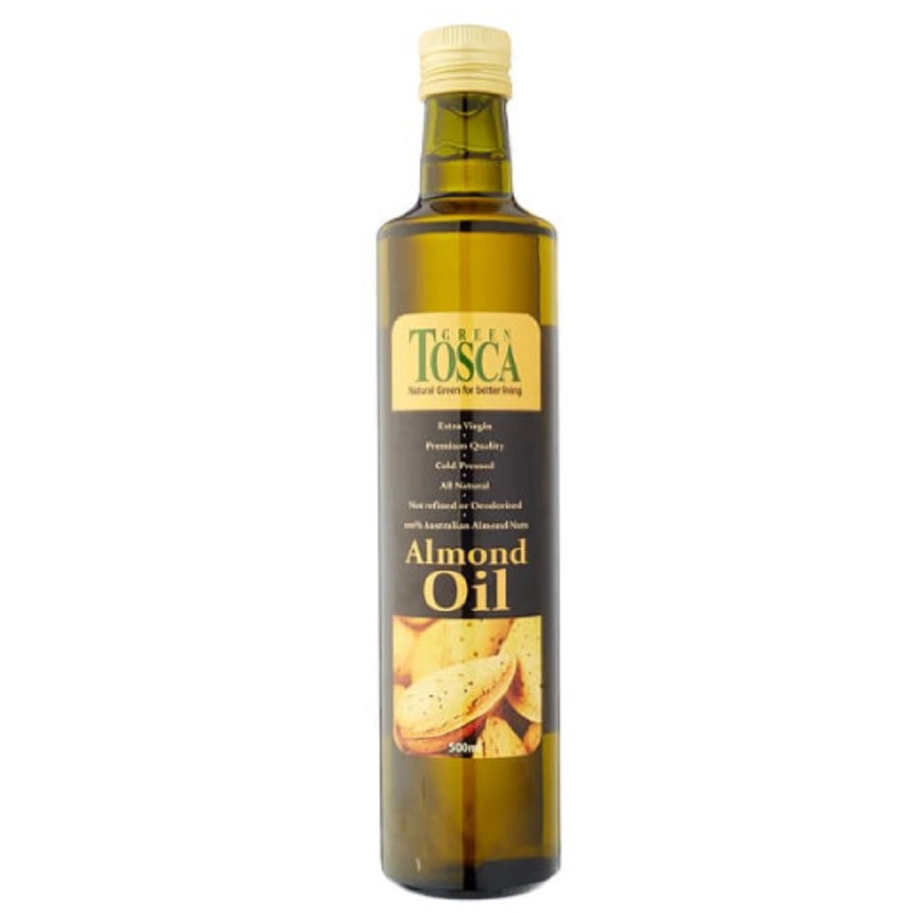 Green Tosca Cold Pressed Almond Oil dihasilkan dari kacang almond manis asal Australia yang diperas pada suhu rendah (cold pressed) Karena akan vitamin E, D, B2, B6, A dan telah lama dikenal juga mengandung berbagai mineral penting bagi tubuh seperti magnesium, kalsium, dan asam lemak omega 6, dan omega 9. Almond oil memiliki titik didih tinggi 216°C baik digunakan untuk menggoreng (pan friying).