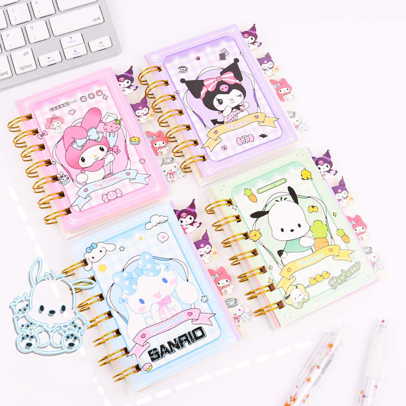 Notebook ring ukuran A7 motif characters dengan berbagai warna yang menarik, soft dan cantik.