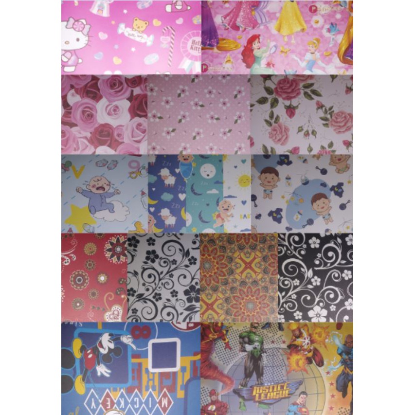 Tanpa permintaan tema, Tema kertas kado akan kami kirim secara random (5 motif - @10 Lembar)
