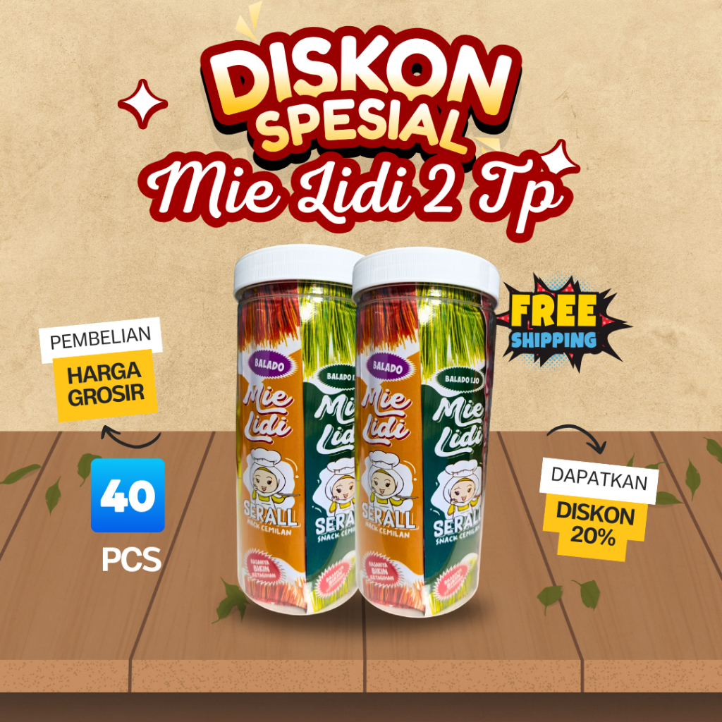 Mie Lidi merupakan cemilan dan jajanan legendaris yang banyak digemari dan disukai semua usia terutama remaja Dengan bumbu taburan khas Serall yang bikin nagih dan nostalgia. Bisa dijadiin teman gabut, teman nonton,dan sangat recomended untuk cemilan sambil nongkrong bareng temen