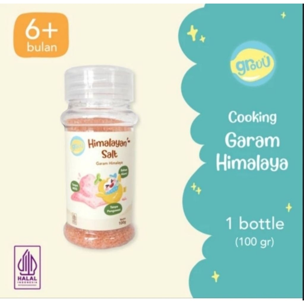 Grouu Garam Himalaya adalah garam merah muda alami yang berasal dari pegunungan Himalaya, dikenal karena kandungan mineralnya yang kaya. Garam ini sering digunakan sebagai bumbu masak, terutama untuk makanan bayi (MPASI) karena rendah natrium dan aman untuk pengenalan rasa. Grouu Himalayan Salt juga tersedia dalam bentuk cooking powder yang terbuat dari rempah-rempah alami.