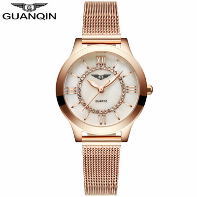 GUANQIN Дамы часы моды кварцевые часы браслет сетки нержавеющей стали смотреть