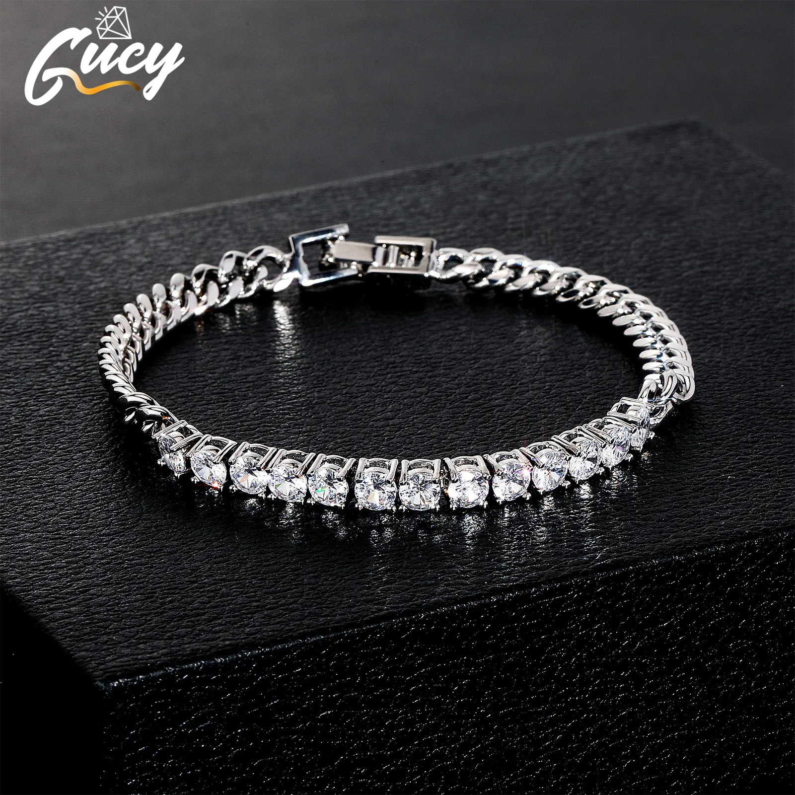 GUCY, хип-хоп, 4 мм, микрозакрепка, фианит, 1 ряд, медная цепь для тенниса, золотистый, блестящий мужской браслет, ювелирные изделия
