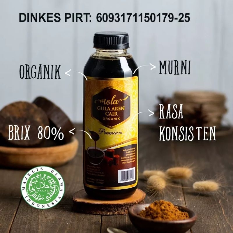 Mola Gula Aren cair premium sangat cocok digunakan untuk makanan dan minuman sehari-hari seperti untuk campuran kopi, es susu dan juga sebagai topping makanan lainnya yang membuat makanan makin lezat.