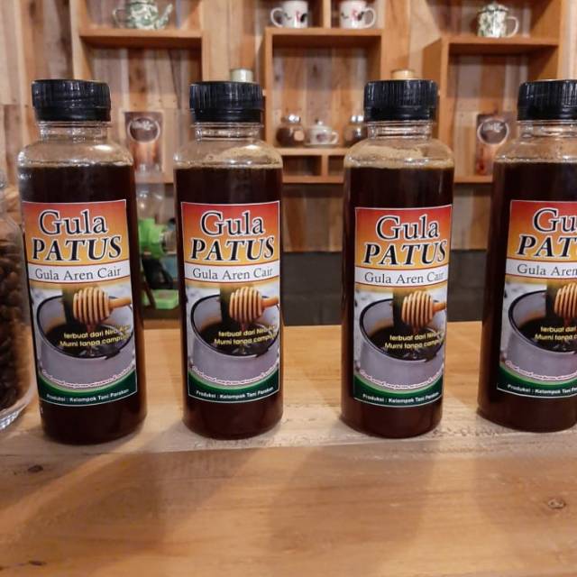 Gula patus adalah nama gula aren cair di daerah kami....terbuat dari nira aren yang langsung di proses langsumg jadi gula cair....gula yang kami produksi murni dari nira aren dan tidak ada campuran lainya....cocok untuk kopi kekinian,teh,dan olahan makanan lainya....kami menjamin keaslian dan kwalitas produk kami....