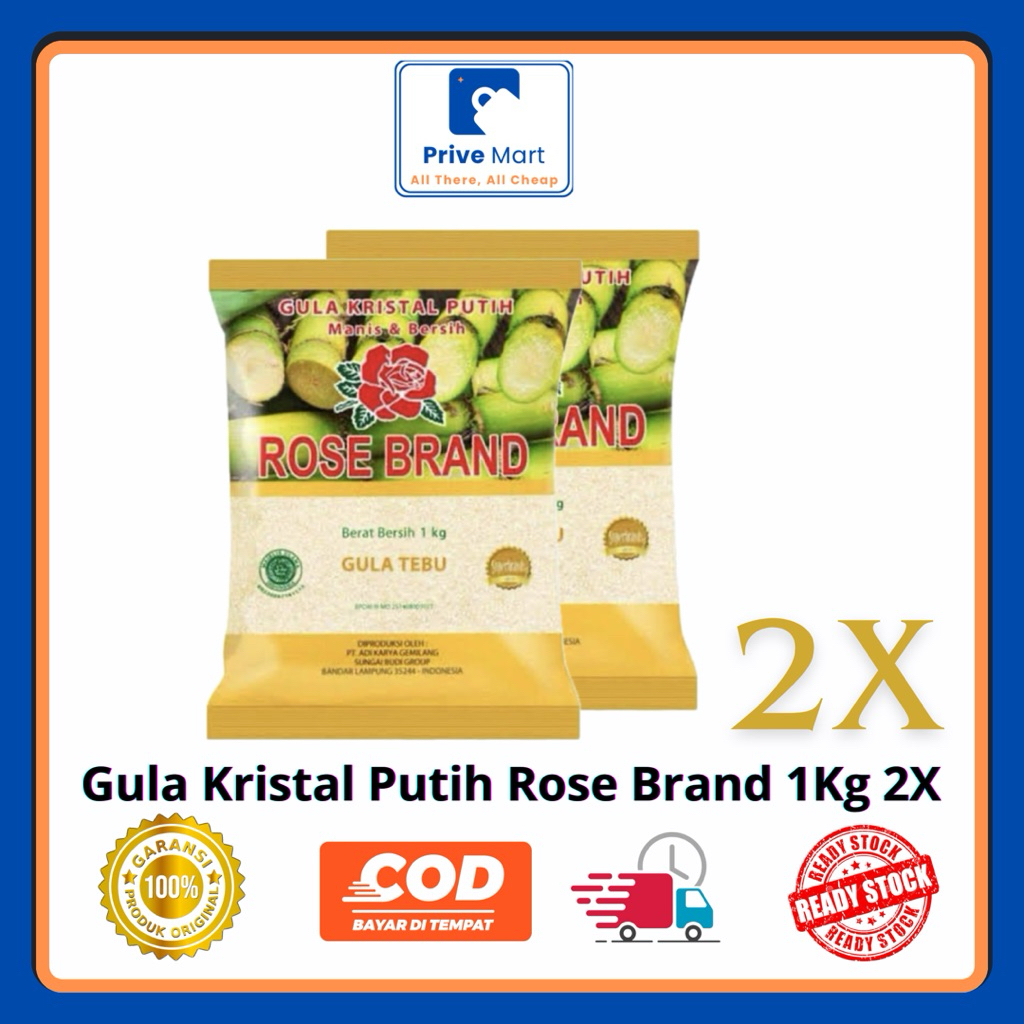 Gula pasir Rose Brand kuning adalah gula kristal yang terbuat dari tebu pilihan berkualitas tinggi. Gula ini memiliki warna kuning alami karena tidak melalui proses pemurnian yang terlalu lanjut, sehingga mempertahankan sebagian molase (tetes tebu) yang memberikan warna dan rasa khas. Gula ini cocok untuk berbagai keperluan memasak dan minuman, memberikan rasa manis alami dan aroma khas tebu