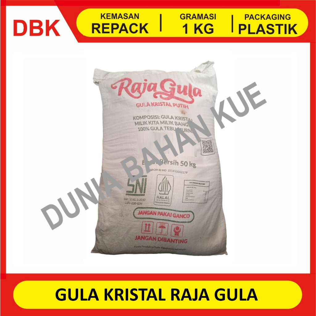 GULA KRISTAL RAJA GULA KEMASAN REPACK 1 KG DARI KEMASAN ASLI BAG 50 KG.