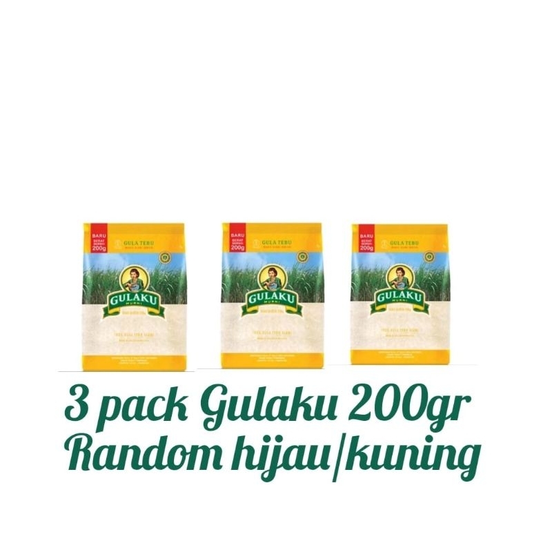 Gula merk GULAKU kemasan 200 gram 3 pack.